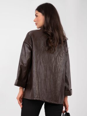 Blazer elegante de piel sintética con manga 3/4 Mersi – marrón