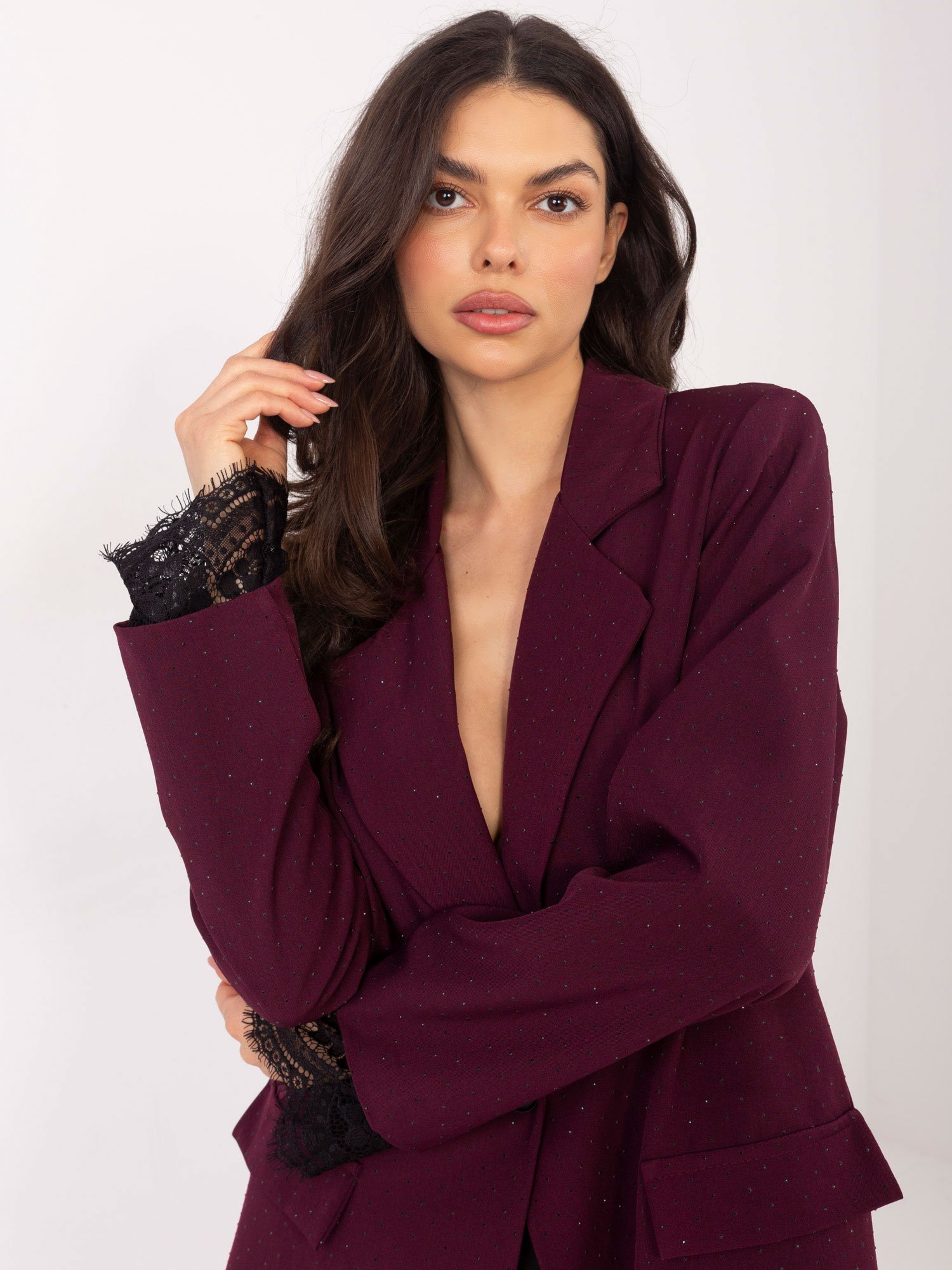 Blazer oversize con encaje y cristales ESTRA – rojo vino
