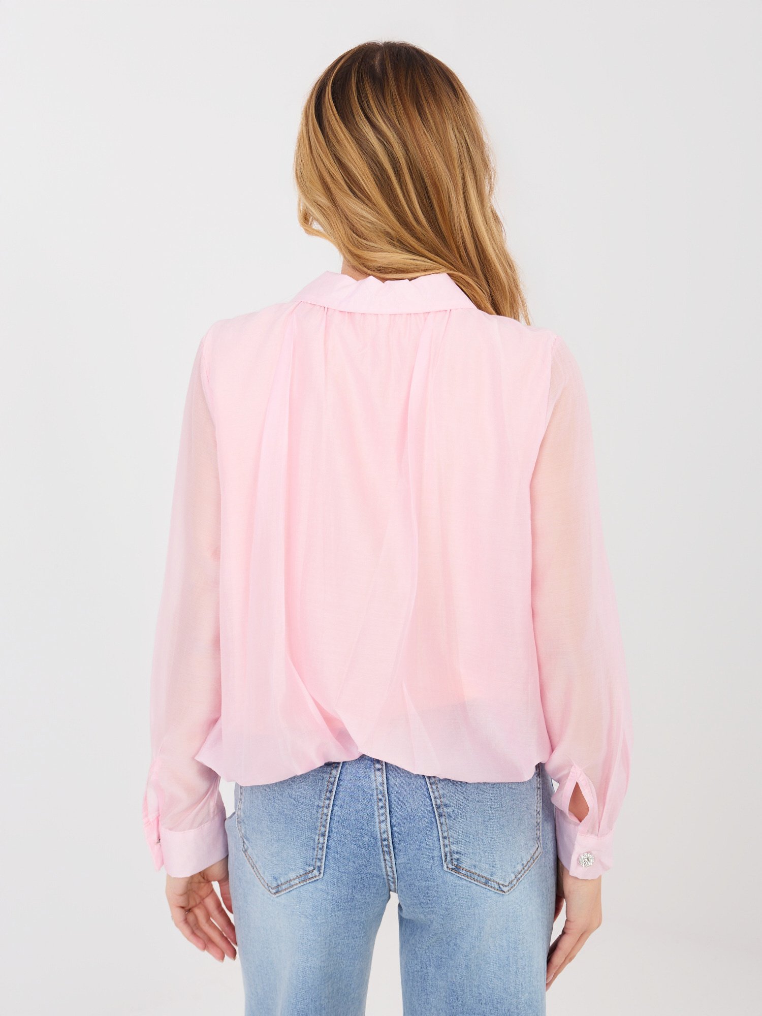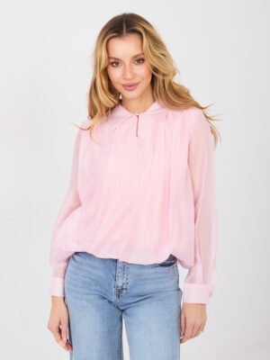 Blusa de tejido ligero con pliegues y broche ERICA – rosa claro