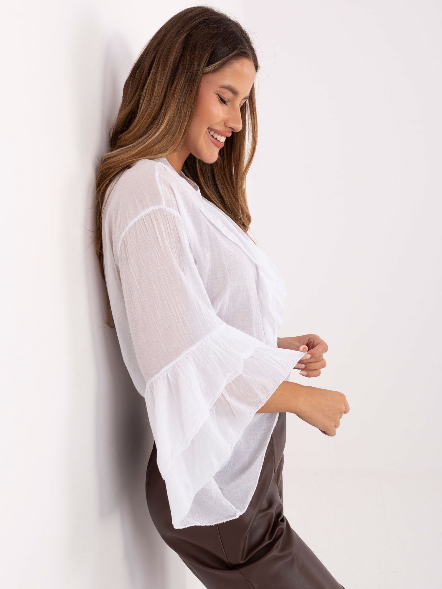 Camisa elegante de algodón de corte oversize, diseñada para adaptarse a diferentes tipos de figura y estilos. El tejido ligero y fluido cae suavemente, ayudando a disimular imperfecciones y proporcionando una sensación de comodidad durante todo el día. Los delicados volantes aportan un toque femenino y sofisticado, mientras que el diseño amplio añade ligereza y movimiento a la prenda. Un modelo versátil, perfecto tanto para looks elegantes como para combinaciones más relajadas.