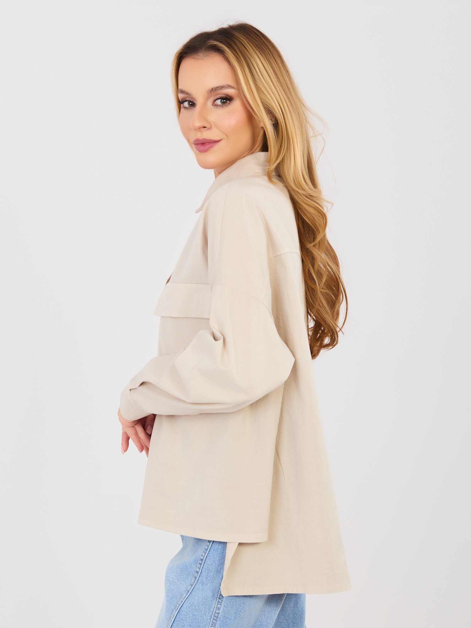 Camisa oversize moderna con espalda alargada BESSY – beige