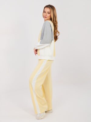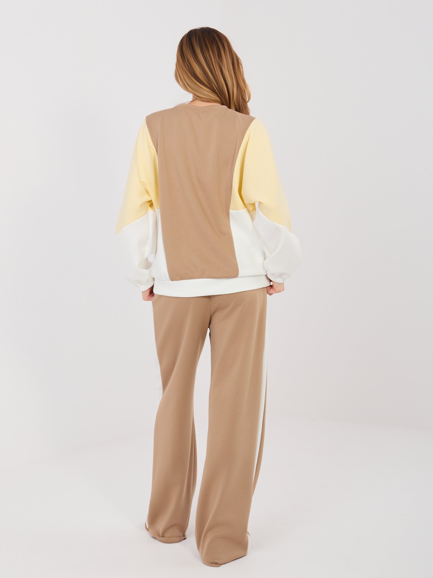 Conjunto casual que destaca por un sutil detalle de letras brillantes. La sudadera de silueta relajada, con cuello redondo y mangas en contraste, aporta ligereza al look, mientras que los pantalones de corte recto, con detalles laterales, garantizan comodidad y libertad de movimiento. Ideal para el día a día, desde paseos por la ciudad hasta momentos de relax en casa. El conjunto puede llevarse completo o combinarse por separado con otras prendas del armario.