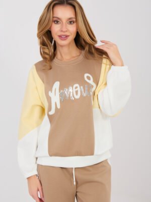 Conjunto casual con detalle de letras brillantes CHARLY -beige oscuro