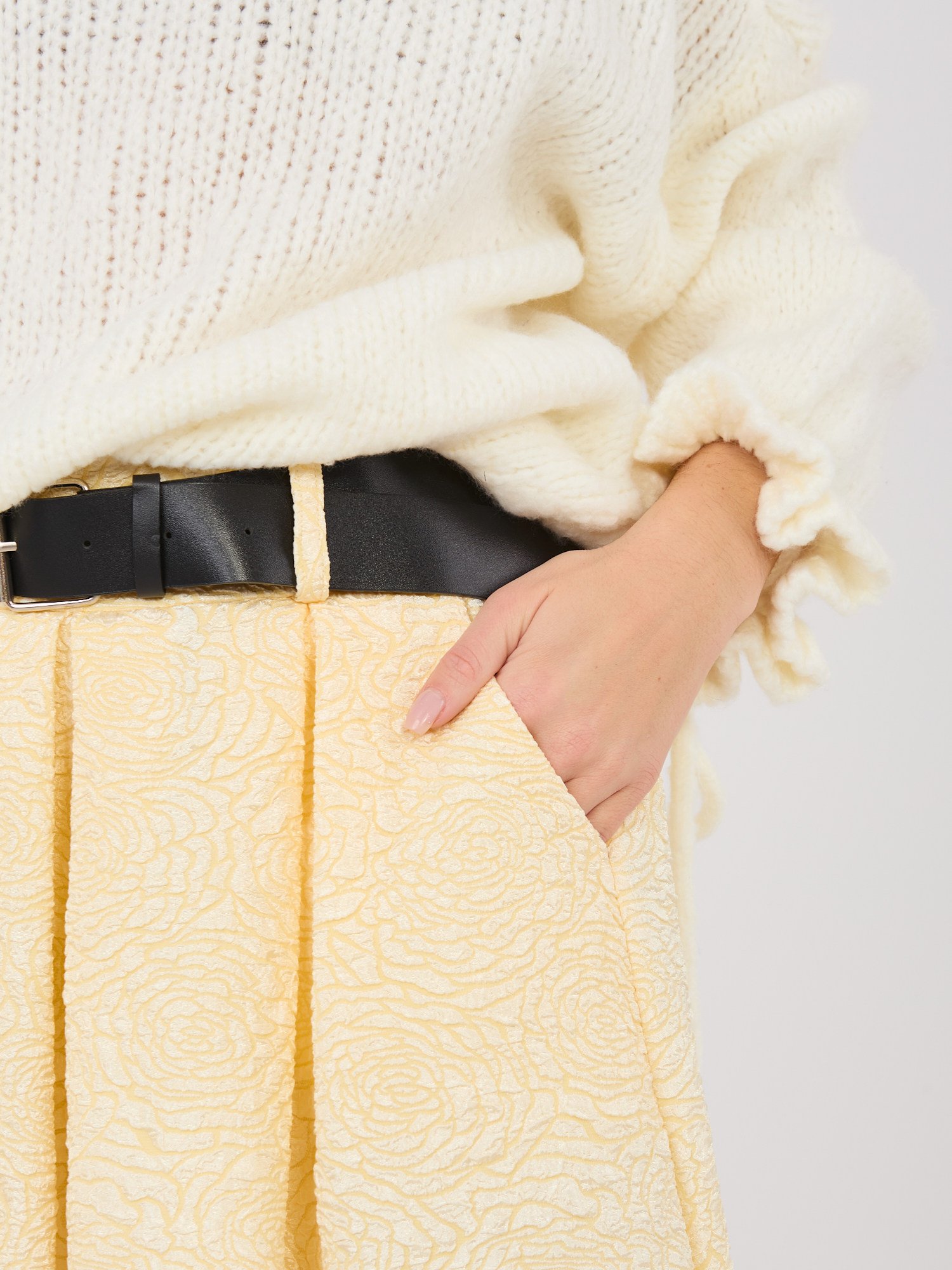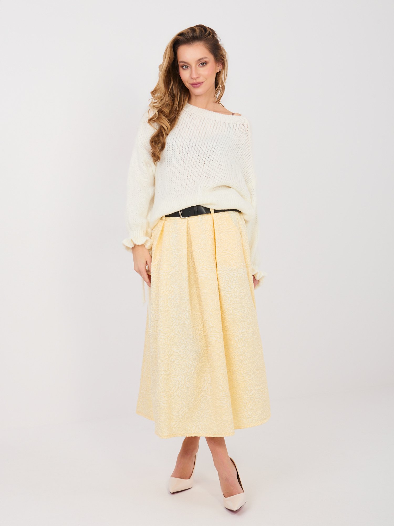 Falda midi de tejido texturizado con cinturón MARISSA – amarillo claro