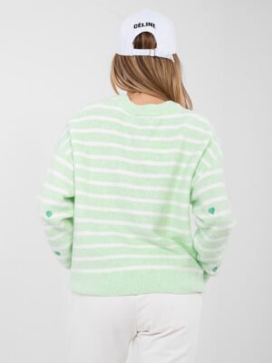 Jersey cálido de rayas con motivos de corazones WINNY – verde claro