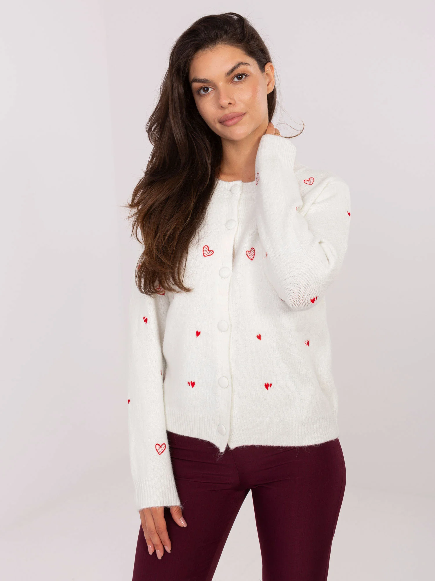 Jersey cárdigan suave con corazones bordados y botones Love – blanco