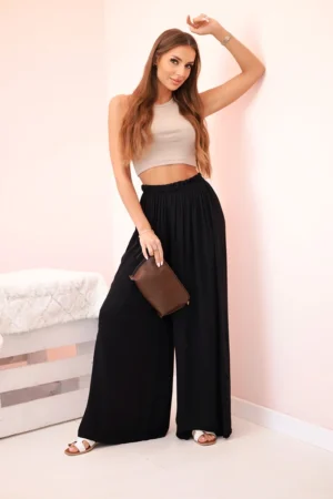 Elegante, ligero y extremadamente cómodo. Este pantalón palazzo de viscosa cae suavemente sobre el cuerpo creando una silueta estilizada y femenina. Su tejido transpirable y tacto suave, es perfecto tanto para looks diarios como para conjuntos más arreglados. La cintura elástica se adapta cómodamente sin apretar y permite libertad total de movimiento.