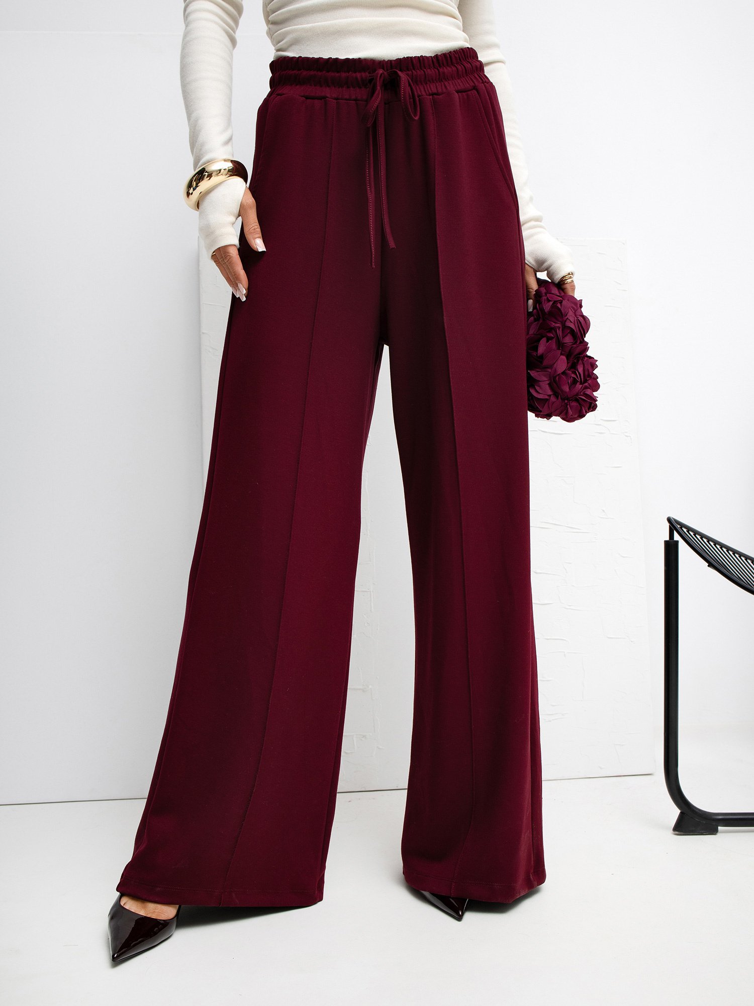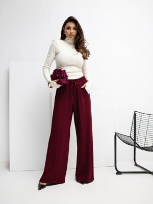 Pantalón palazzo de punto con bolsillos Miley – burdeos