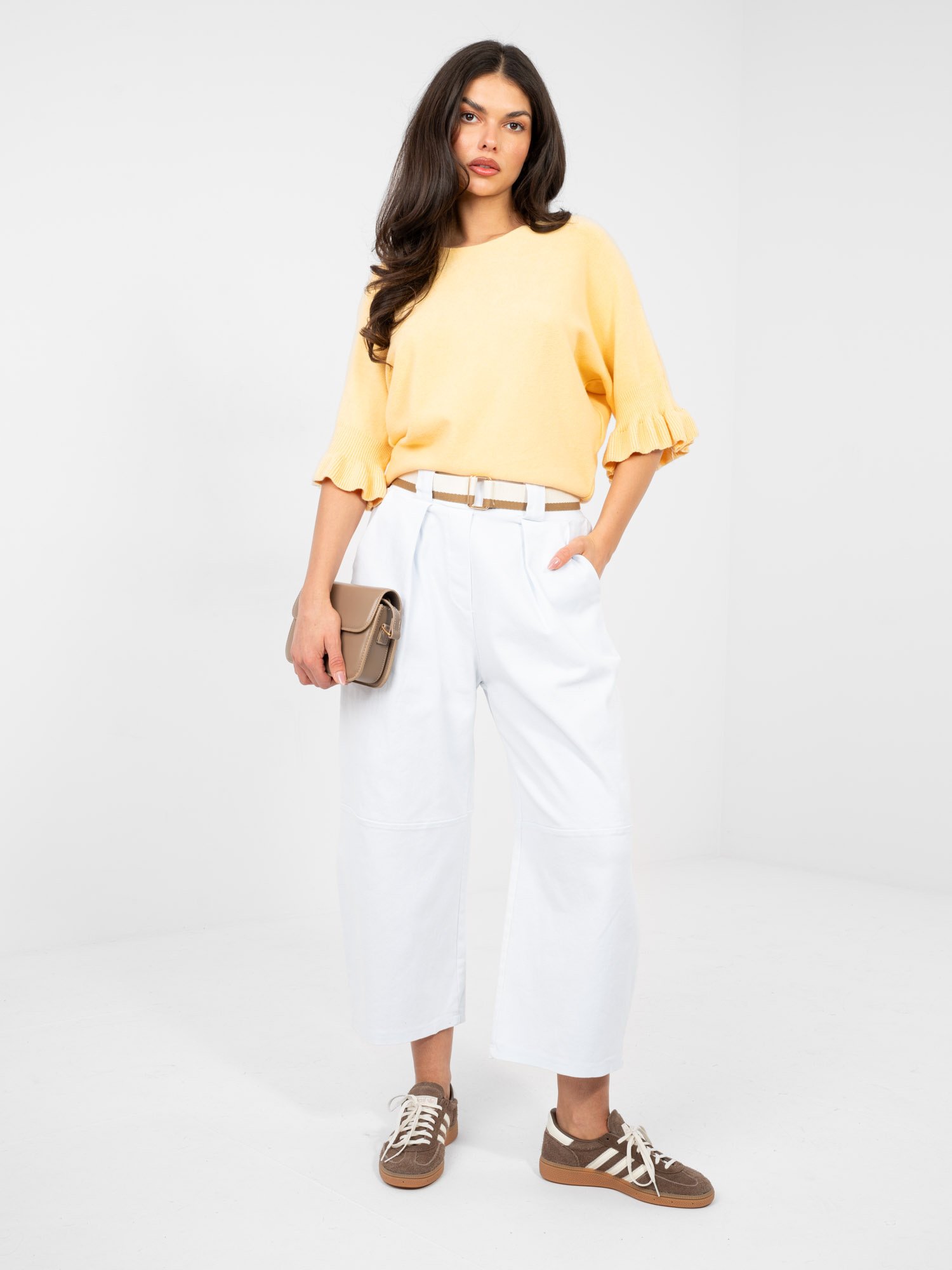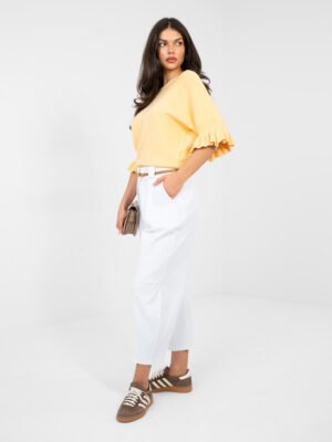 Pantalones tipo culotte de corte amplio confeccionados en algodón elástico de alta calidad. La cintura alta estiliza la figura y garantiza comodidad durante todo el día. Su diseño minimalista permite combinarlos tanto con blusas elegantes como con prendas casual. Perfectos para oficina, ciudad o uso diario.