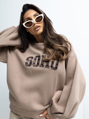 Sudadera oversize de corte amplio con estampado decorativo y mangas anchas.