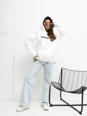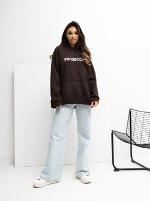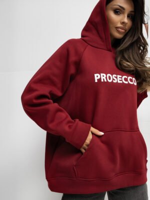 Sudadera oversize con capucha y estampado PROSECCO bordo