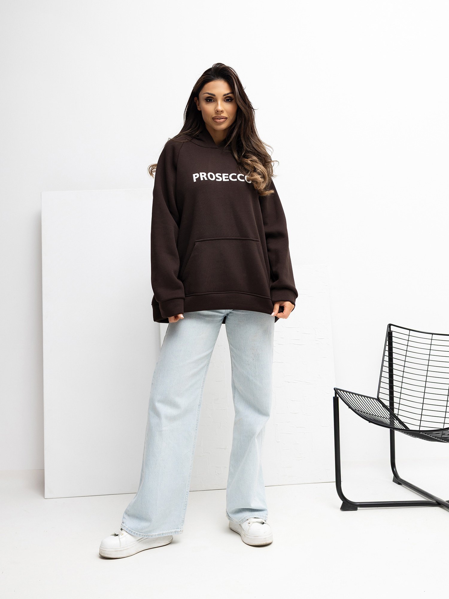 Sudadera oversize con capucha y estampado PROSECCO marrón oscuro