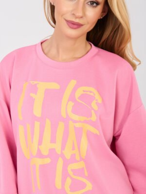 Sudadera oversize de estilo urbano con estampado WHAT IT IS – rosa